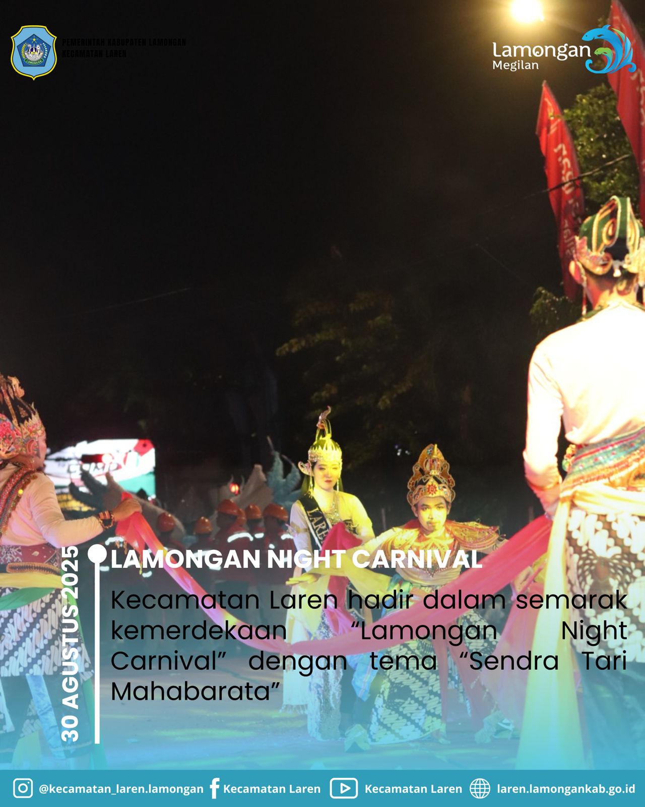 Kecamatan Laren turut meriahkan semarak kemerdekaan dengan menghadirkan penampilan spektakuler dalam Lamongan Night Carnival bertema “Sendra Tari Mahabarata”. 🌟🕺💃